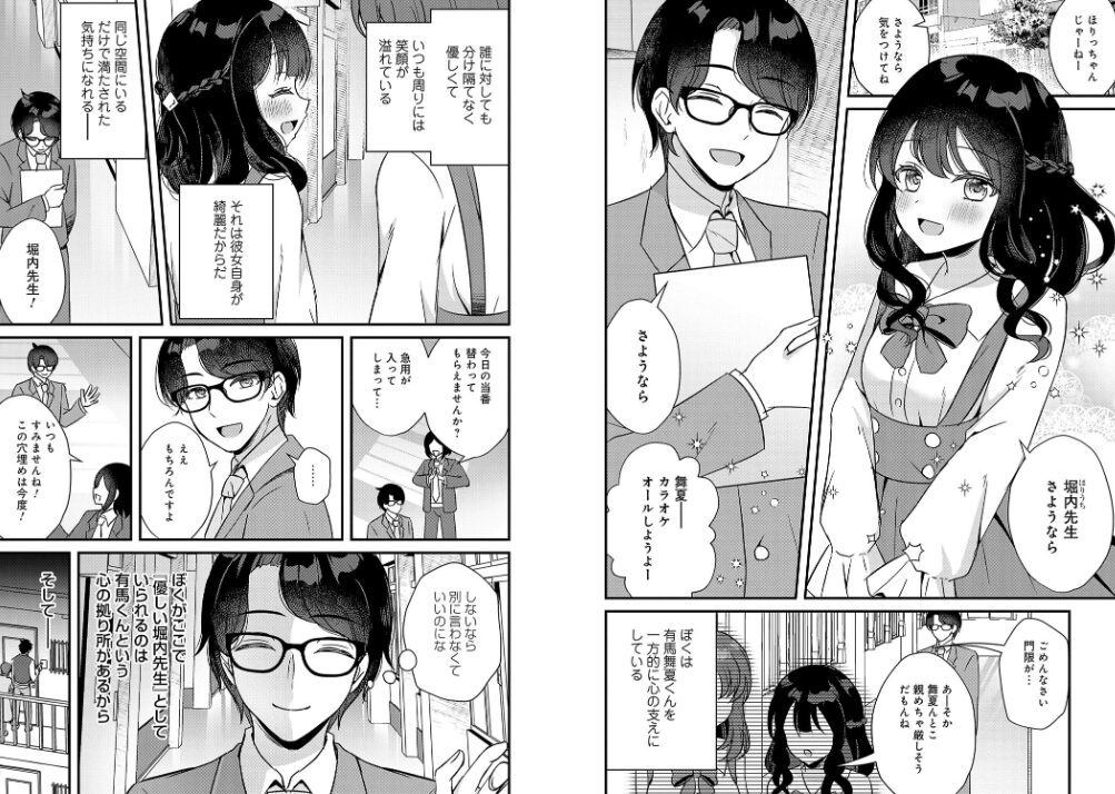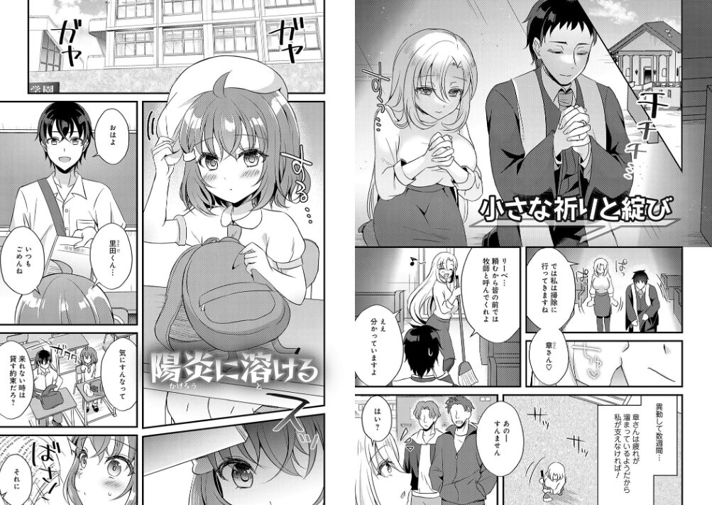 メインストーリーは「とろけて、くろずみ、繭の糸 前後編」、こちらのストーリーは学校で教師をつとめる心優しい先生と、その学校に通う、周囲に笑顔あふれる可憐な少女のお話です。